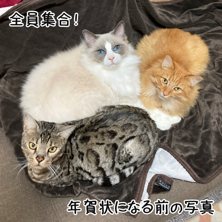 たまたま、ふと見たら我が家の3ニャンが集まって